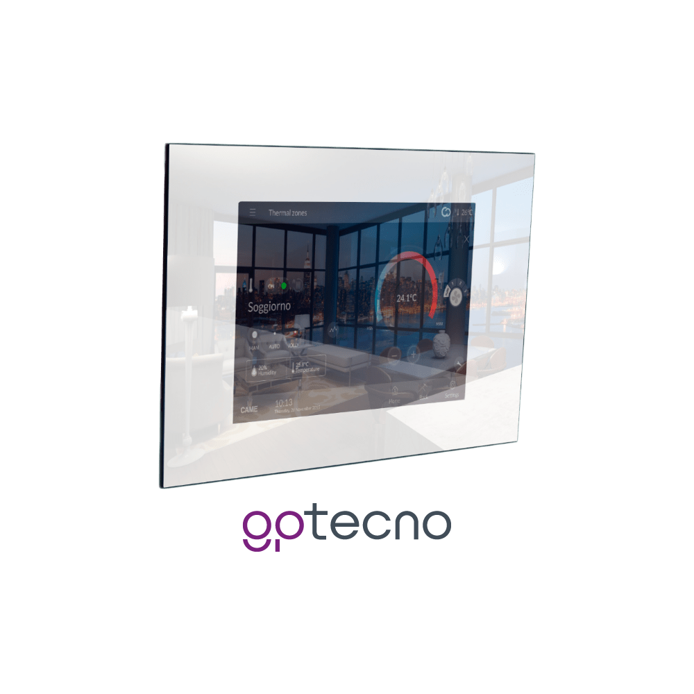 - Il sensore touch e il display sono flottanti, fissati su sospensioni a molle, che compensano le possibili imperfezioni o non planarità della parete. La perfetta sensibilità al tocco è sempre garantita.